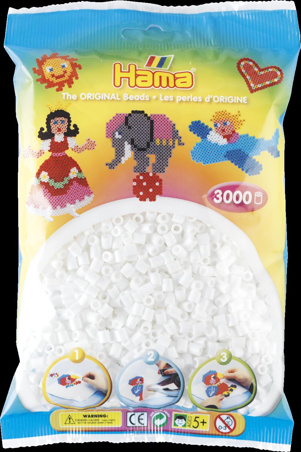Hama Bügelperlen midi, weiß, im Beutel, 3.000 Stück Durchmesser Bügelperle midi: 5,0 mm - 5 Stück (00201-01)