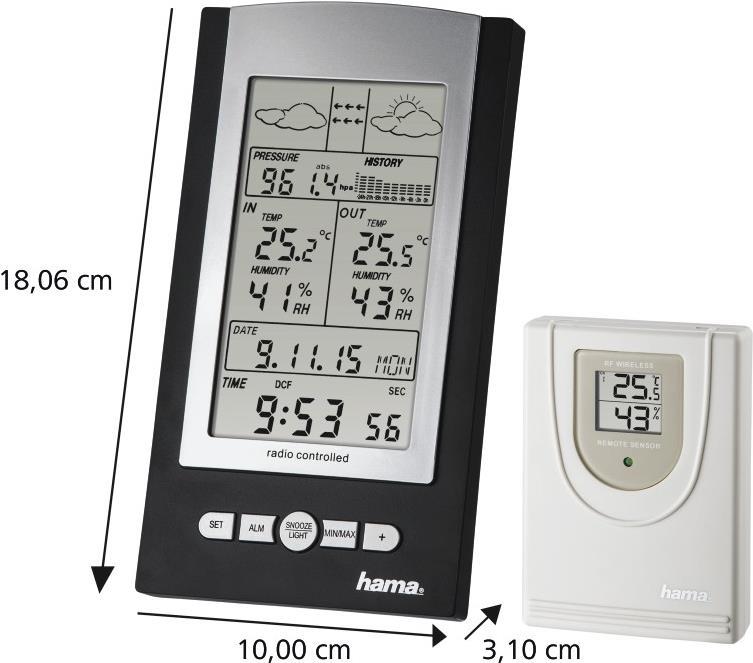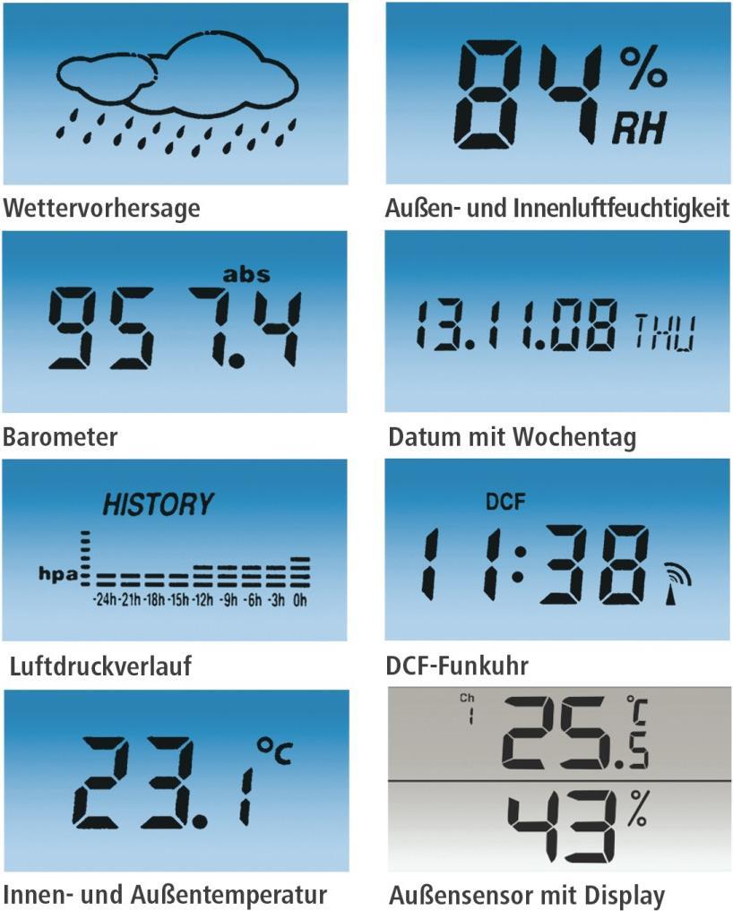 Innen-Luftdruck, Innen-Thermometer, Außen-Hygrometer, Außen-Thermometer |