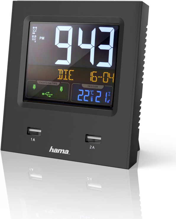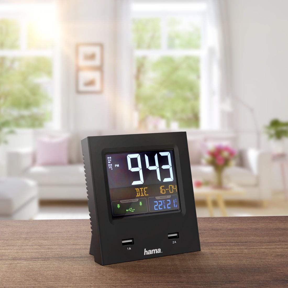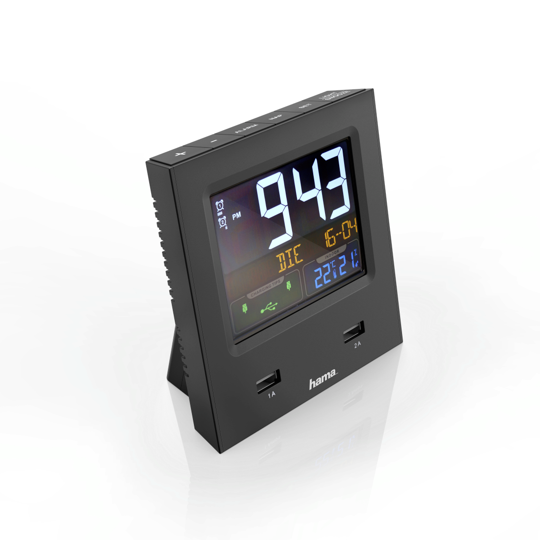 Hama Dual-USB Digitale Tischuhr Schwarz Quadratisch (00186381)