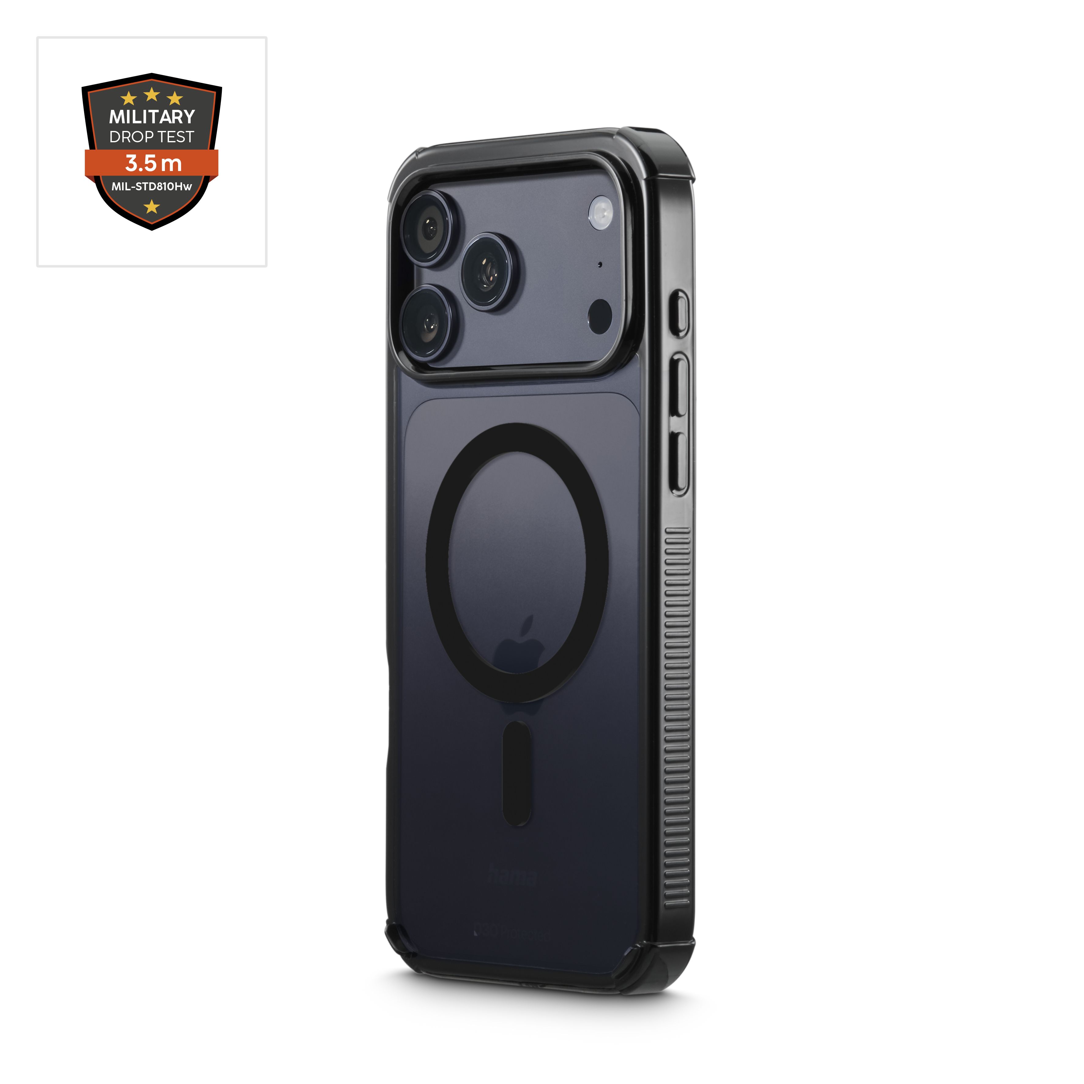 Hama Handyhülle Extreme Protect f Apple iPhone 17 Pro Max, magnetisch, Schwarz (00232410)drop it like it’s hot: und das 10 Mal im Test! Die Handyhülle ist für extremste Bedingungen gemacht – sturzsicher bis zu einer Fallhöhe von 3,5 m, getestet und zertifiziert nach Militärstandard MIL-STD-810Hw