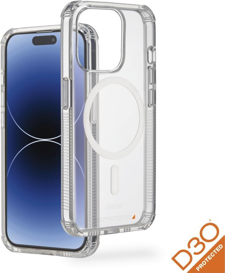 Voller Schutz ohne Kompromisse für Oberfläche, Display und Kamera – für jeden Extremeinsatz, vom Sandkasten bis zum Fallschirmsprung. Mit der Handyhülle "Extreme Protect" sind Sie und Ihr iPhone 15 Pro für jedes Abenteuer gewappnet.Voller Schutz: Handyhülle Extreme Protect MagCase.Hochwertige Geräte wie das iPhone vor äußeren Einflüssen, Stößen und Stürzen besonders zu schützen, muss kein schwieriges Unterfangen sein. Mit der Handyhülle MagCase "Extreme Protect" buchen Sie Ihren persönlichen Bodyguard für Ihr iPhone und kommen zudem in den Genuss einiger komfortabler Vorzüge.Extremer Schutz ohne jeden Kompromiss.Die iPhone-Hülle MagCase "Extreme Protect" wird aus dem einzigartigen D30-Material gefertigt und ist somit nahezu unzerstörbar. Der wichtigste Vorteil: Es gibt keinen besseren Schutz für Ihr iPhone. D30 erreicht den dünnsten und fortschrittlichsten Aufprallschutz, den es je für eine Handyhülle gab. Und das ganz ohne die Nutzung, die Bedienung oder die Audiowiedergabelautstärke des iPhones zu beeinträchtigen.Kristallklare Außenhaut. Absolut kratzfest.Die Bumper-Handyhülle MagCase "Extreme Protect" garantiert nicht nur einen bruchsicheren und stoßfesten Fallschutz, sondern hat durch den 6H-Härtegrad ein besonders widerstandsfähiges Oberflächenfinish. Die Gefahr, durch andere Gegenstände in Hosen-, Hand- und Jackentaschen zerkratzt zu werden, wird somit eliminiert. Zudem macht die stoßfeste Handyhülle jederzeit eine gute Figur, da die verwendeten Materialien ein gelbliches Verfärben vollständig verhindern.Kamera- und Displayschutz dank perfekter Passform.Das Handyhülle mit Kameraschutz verspricht jedoch noch weitaus mehr: Das perfekte Design passt sich optimal an Ihr iPhone an und lässt dabei dennoch die wichtigsten Zugänge wie Lautsprecher und Ladebuchse frei. Durch die erhöhten Kanten und den umlaufenden Rand können Sie Ihr iPhone jederzeit bedenkenlos ablegen, da Kamera und Display optimal geschützt sind. Die Hülle bedeckt auch die Seitentasten – das ermöglicht nicht nur Staubschutz, sondern auch einen perfekten Druckpunkt.Voller Grip bei voller Ladung.Dank des rutschhemmenden Materials und der Riffelung an den Seiten haben Sie die Handyhülle jederzeit sicher im Griff und die stoßfesten Ecken sorgen dank Materialverstärkung für noch mehr Sicherheit bei Stößen und Stürzen. So liegt das Handy jederzeit sicher auf dem Tisch – eine Ebene mit Seitenrand und Kameraschutz. Starke Hülle, problemlos kabellos laden: Der integrierte, perfekt ausgerichtete Magnetring ermöglicht Wireless-Charging für das Apple iPhone und eine perfekte Auto-Positionierung auf jedem Wireless Charger. Die Handyhülle ist mit allen originalen Apple MagSafe- und Hama MagLine-Produkten kompatibel.Hauptmerkmale