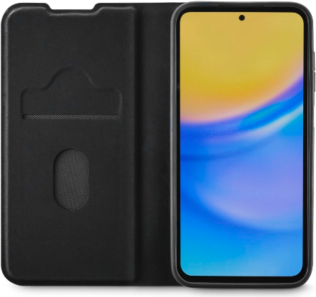 Total im Trend: Handy-Etui mit Kartenfach für einen eleganten Look aus edlem Kunstleder mit Metallelementen für das Samsung Galaxy A15/A15 5GBesonders langlebiger SchutzRundum robustes Handy-Case: edle Kombination aus ...