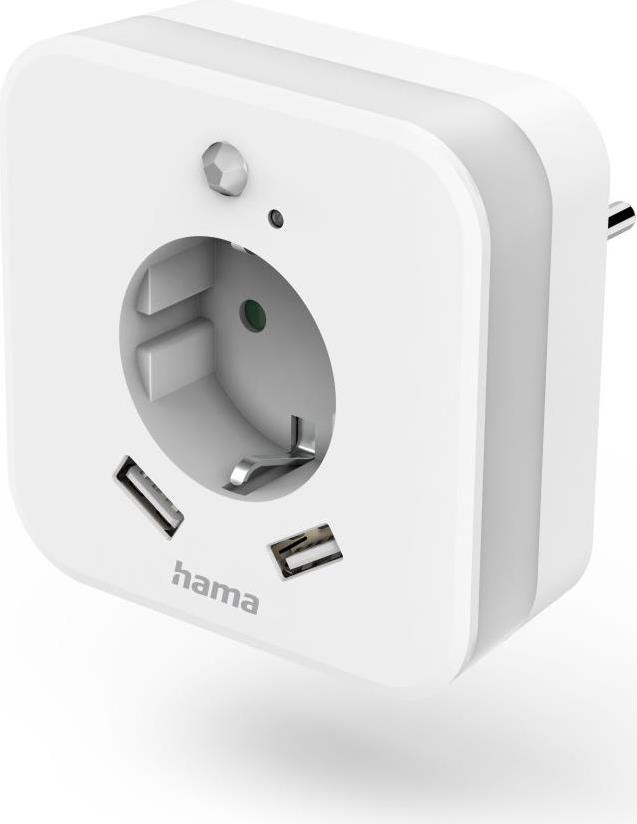 Hama LED-Nachtlicht mit Steckdose, 2 USB-Ausgänge, Bewegungs- und Lichtsensor (00223498)