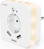 • Hama LED-Nachtlicht mit Steckdose, 2 USB-Ausgänge, Bewegungsmelder, Lichtsensor (00223507)