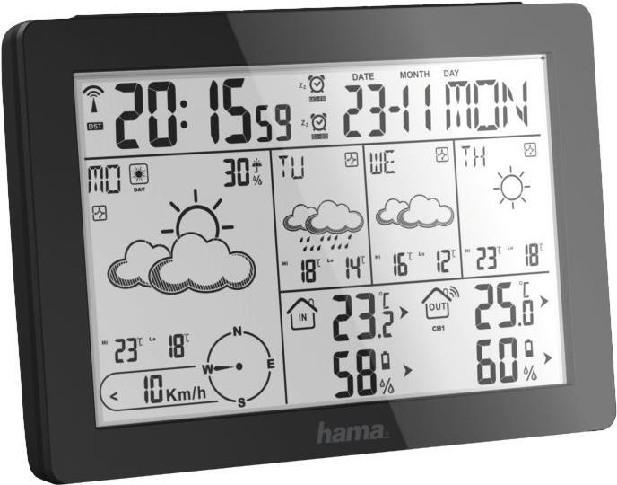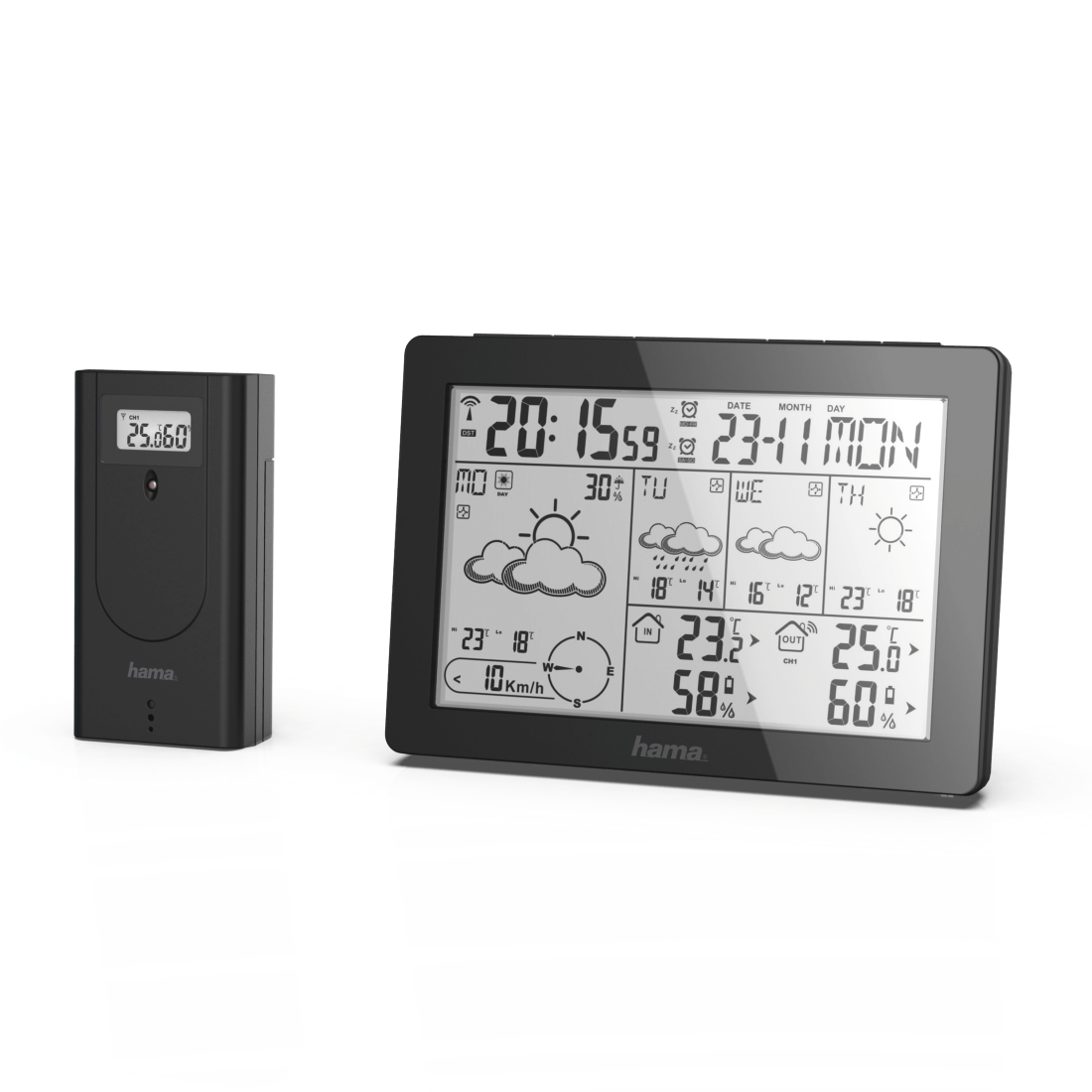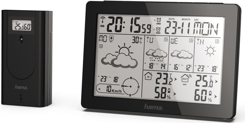 Anemometer (Windgeschwindigkeit), Innen-Hygrometer, Innen-Thermometer, Außen-Hygrometer, Außen-Thermometer, Regenmesser |