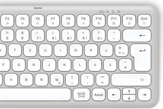 Die Hama WK-500 ist eine kompakte kabellose Tastatur, die für vielseitige Konnektivität mit mehreren Geräten entwickelt wurde. Dank ihrer Kompatibilität mit PC, Mac, Android und Apple iOS kann diese Tastatur sowohl zu Hause als auch unterwegs verwendet werden. Ihr kompaktes 75-%-Layout umfasst 79 Tasten mit Scherenmechanismus, die ein reaktionsschnelles Tipperlebnis gewährleisten. Die 9 Funktionstasten, darunter ein Ein-/Aus-Schalter und eine Assistenz-Taste, verbessern die Benutzerfreundlichkeit für eine Vielzahl von Aufgaben.