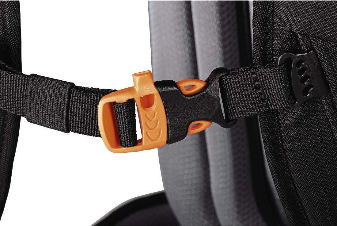 Verstellbare gepolsterte Schulterriemen, Hüftgurt, Softgriff, Gurtschlaufe, Brustgurt mit Signalpfeife