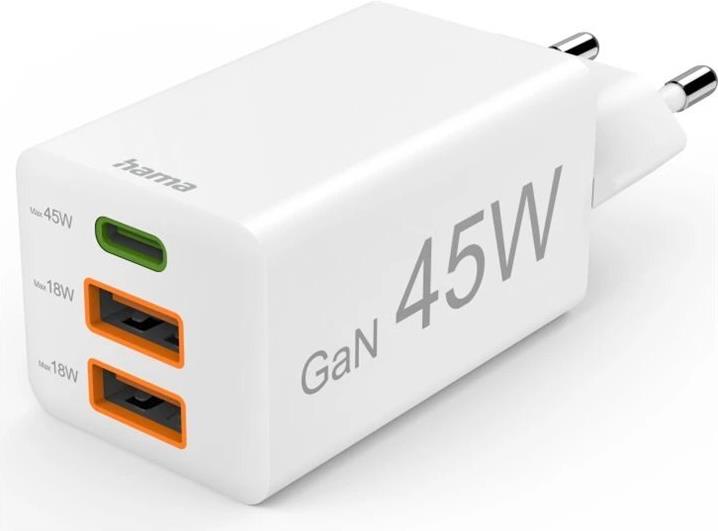 Hama - Netzteil - USB-C, GaN, Power Delivery - Wechselstrom 100-240 V - 45 Watt - Ausgangsanschlüsse: 2 - weiß (00201995)