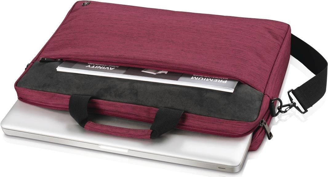 Ob lässig getragen oder zum Business-Outfit - das naturfarbene Rot im fein aufeinander abgestimmten Materialmix der Notebook-Tasche macht sich in beiden Varianten gut, ohne overdone zu wirken. Das perfekte Maß an Style, Platz und Schutz!