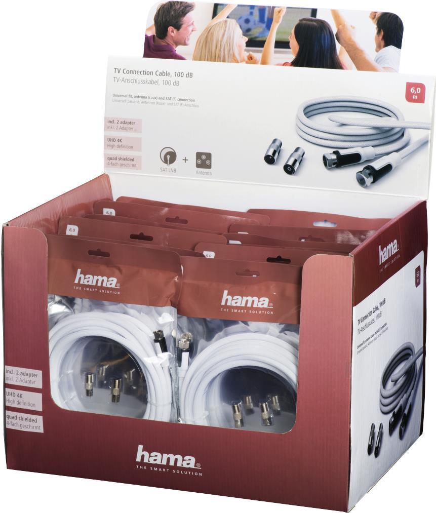 Hama TV-Anschlusskabel, F-St. - F-St., 100 dB, Gewebe, inkl 2 Koax-Adapter, 6 m (00056588)