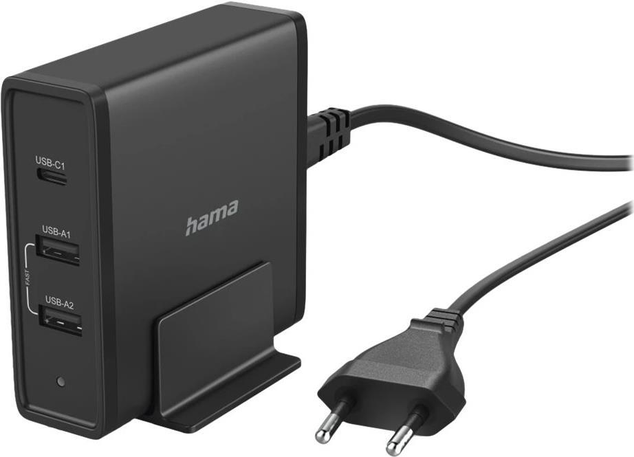 Hama Essential Line - Netzteil - 5 65 Watt - 3 A - PD - 3 Ausgabeanschlussstellen (2 x USB, 24 pin USB-C) - Schwarz (00200017)