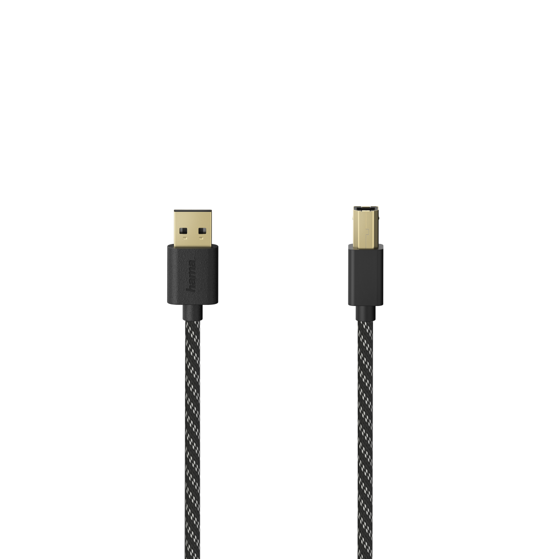 Hama 00201001 USB Kabel USB 2.0 1,5 m USB A USB B Schwarz - Silber (00201001)