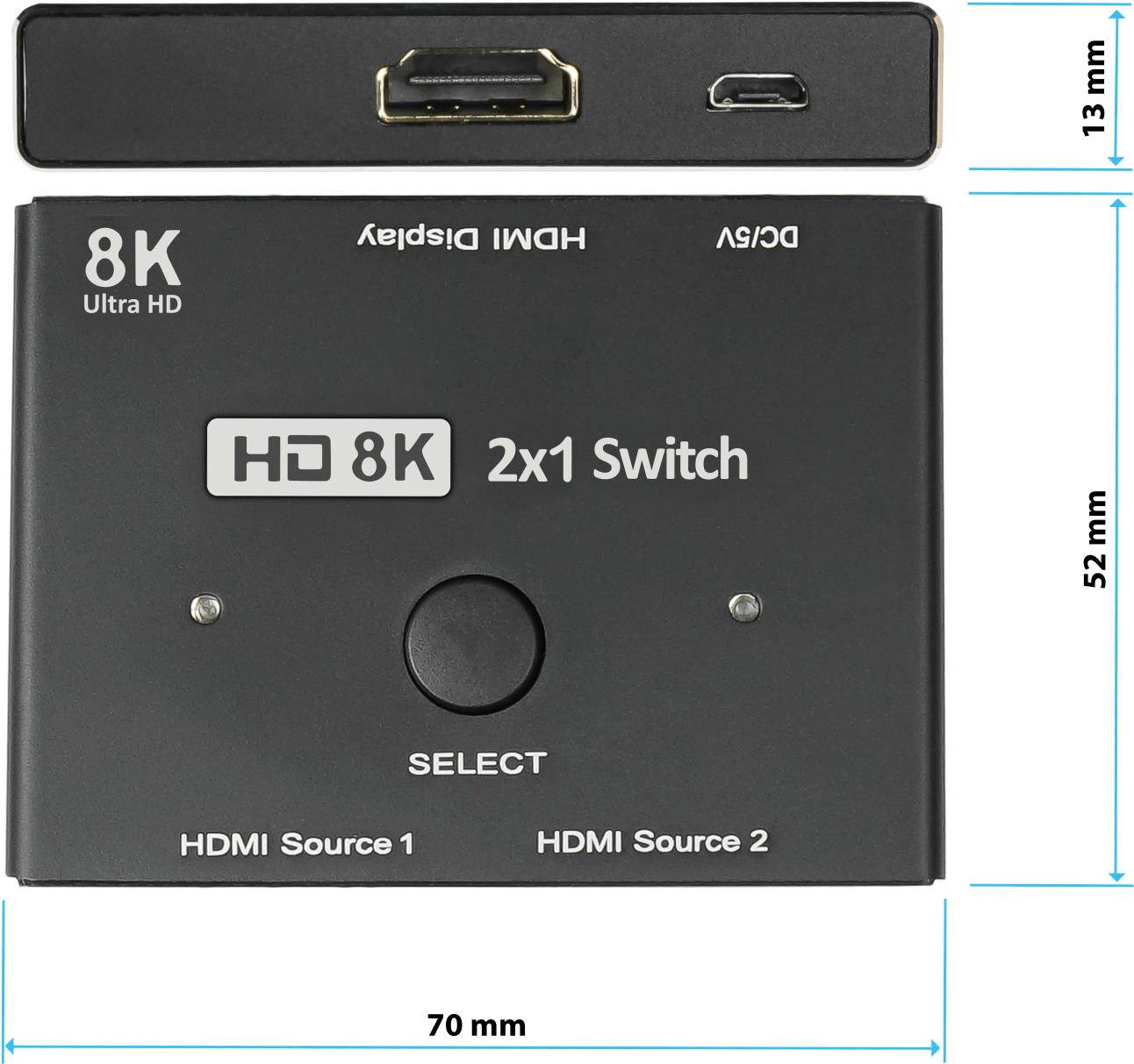 HDMI 2.1 Switch / Umschalter, 2-fach (2x Eingang und 1x Ausgang), direktional, 8K @30Hz, Good Connec (GC-M0261)