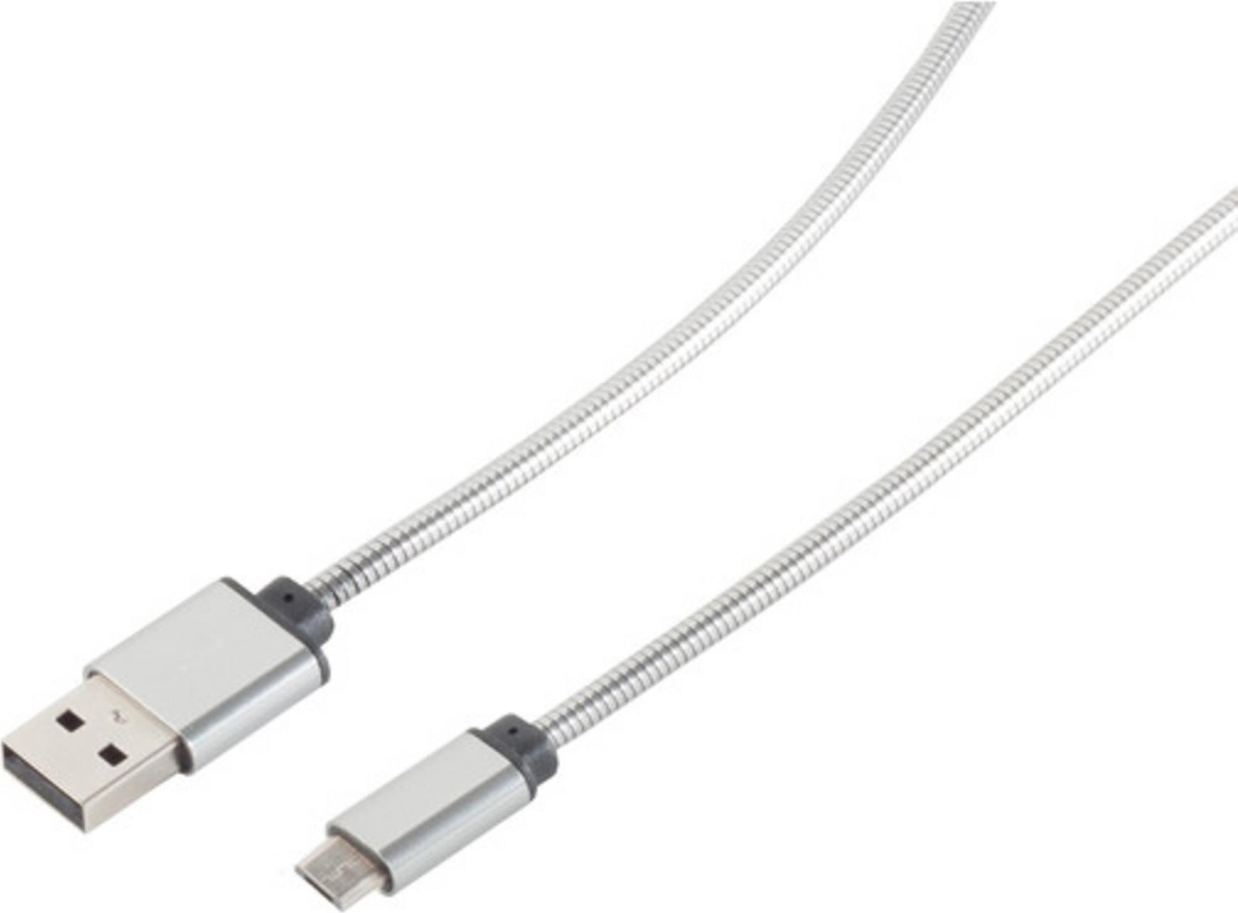 USB Lade-Sync Kabel USB A Stecker auf USB micro Stecker, Metallumantelung (Steel) Silber 1m · Anschlüsse: USB-A Stecker USB-Micro-B Stecker· Stecker: Metall· Kabelaufbau: AWG 28/24· Adern Material: Kupfer· Stecker ...