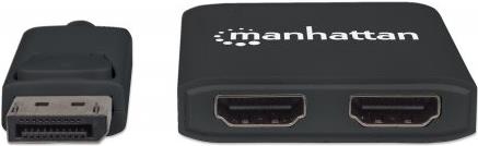 | Produktbeschreibung | Manhattan DisplayPort to 2-Port HDMI Splitter Hub with MST - Video-/Audio-Splitter - 2 Anschlüsse |