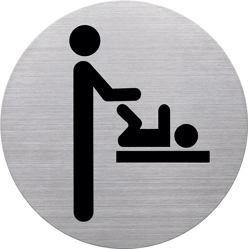 helit Piktogramm "Wickelraum", Durchmesser: 115 mm, silber selbstklebend, aus Edelstahl mit schwarzem Aufdruck, - 1 Stück (H6271600)