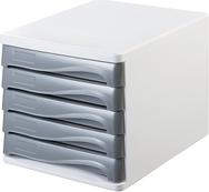 helit Schubladenbox, 5 Schübe, lichtgrau aus Polystyrol/ABS, stapelbar, mit Griffmulde zum Einfachen (H6129482)