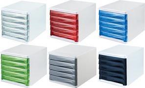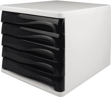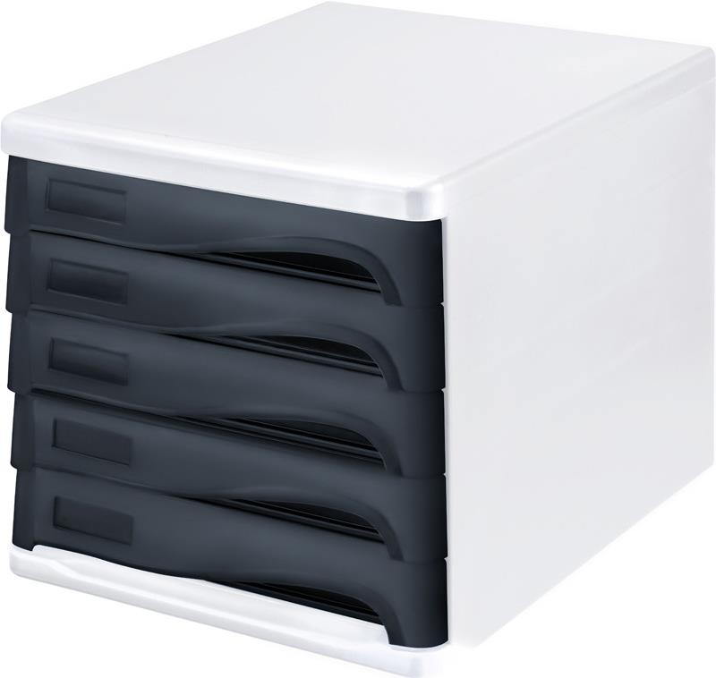 helit Schubladenbox, 5 Schübe, lichtgrau/schwarz aus Polystyrol/ABS, stapelbar, mit Griffmulde zum Einfachen (H6129498)