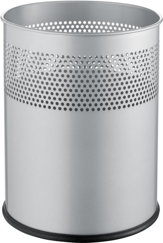 helit Stahl-Papierkorb, mit Lochdekor, 15 Liter, silber aus Metall, rund, Durchmesser: 255 mm, Höhe: 310 mm, - 1 Stück (H2515799)