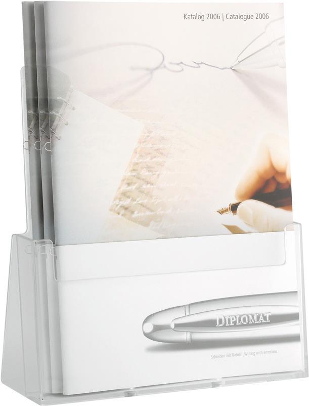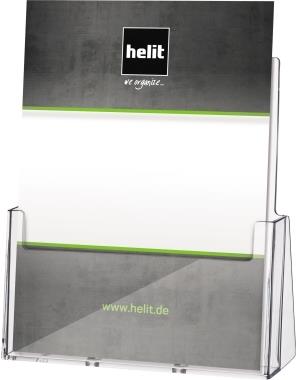 helit Tisch-Prospekthalter, DIN A4 hoch, 1 Fach, glasklar aus Acryl, Wandmontage auf Montageschiene möglich (H2352302)