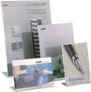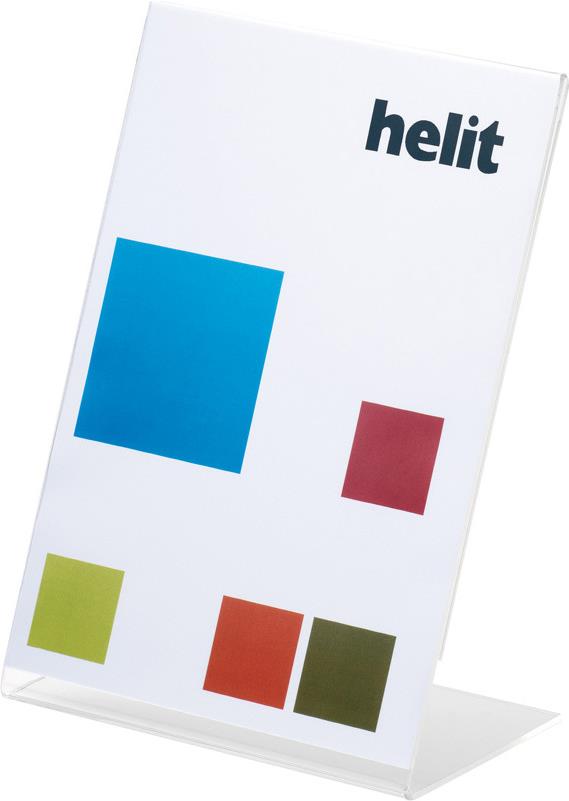 helit Tischaufsteller, Acryl, DIN A4 hoch, schräg, glasklar für einseitige Präsentation, geeignet als Menükartenhalter, seitlicher Prospektaustausch (H2354302)