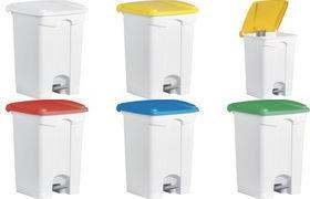 helit Tretabfallbehälter, 45 Liter, mittelgrau/rot rechteckig, aus PP, mit Haken zur Beutelbefestigung (H2402125)