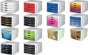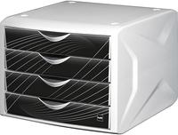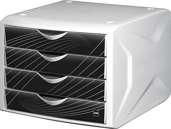 helit Schubladenbox Chameleon, 4 Schübe, Dekor black king aus bruchfestem Polypropylen, Gehäusefarbe: weiß, - 1 Stück (H6129595)