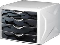 helit Schubladenbox Chameleon, 4 Schübe, Dekor dark hexagon aus bruchfestem Polypropylen, Gehäusefarbe: weiß, - 1 Stück (H6129695)