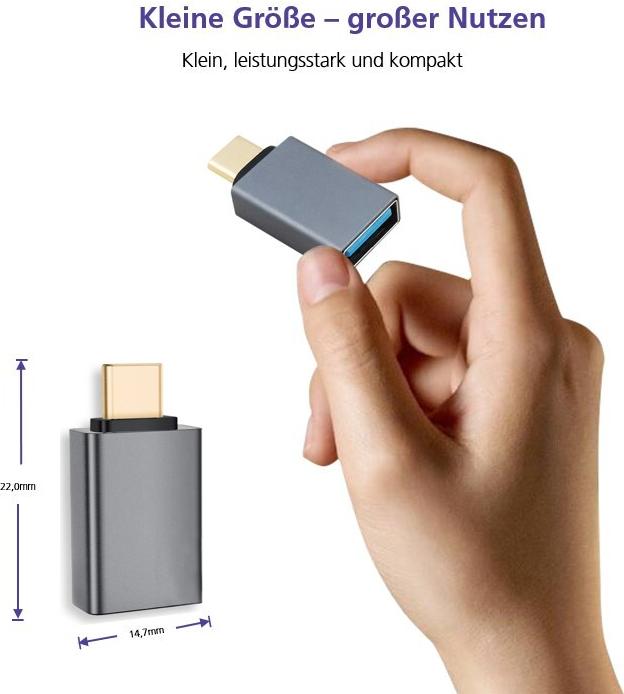 Helos Adapter OTG, USB 3.1 A Buchse/Type-C™ Stecker, PREMIUM, dunkelgrau OTG Adapter USB 3.1 A Bu./Type-C™ St. , PREMIUM , Aluminium-Gehäuse , Übertragungsrate: 5000 Mbit/s , vergoldete Kontakte , ansprechendes Design , Geflecht- und ...