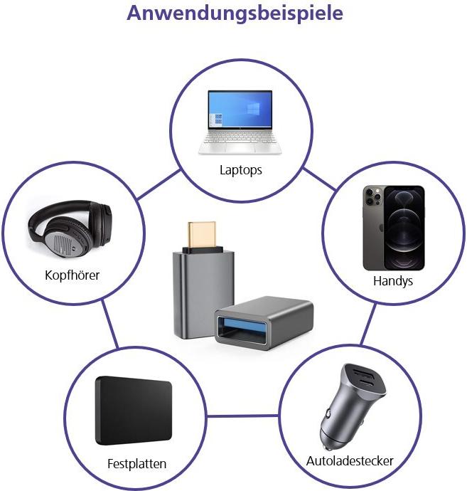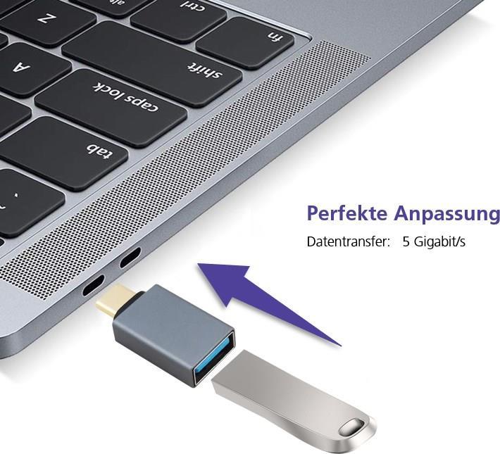 Helos Adapter OTG, USB 3.1 A Buchse/Type-C™ Stecker, PREMIUM, dunkelgrau OTG Adapter USB 3.1 A Bu./Type-C™ St. , PREMIUM , Aluminium-Gehäuse , Übertragungsrate: 5000 Mbit/s , vergoldete Kontakte , ansprechendes Design , Geflecht- und Folie-Schirmung , Haube: vergossen , ROHS 2.0 und REACH-konform , Farbe: schwarzes Kabel, dunkelgraue Stecker (288362)