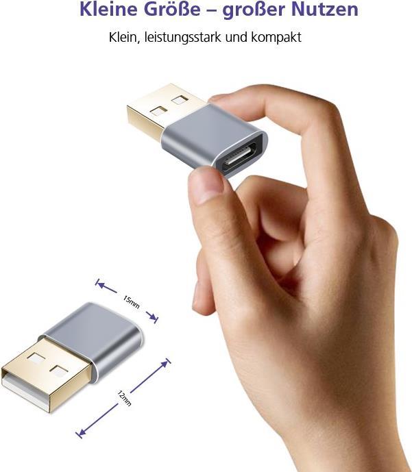 Helos PREMIUM - USB-Adapter - USB (M) zu USB-C (W) - USB 3.1 - 5 V - Dunkelgrau
