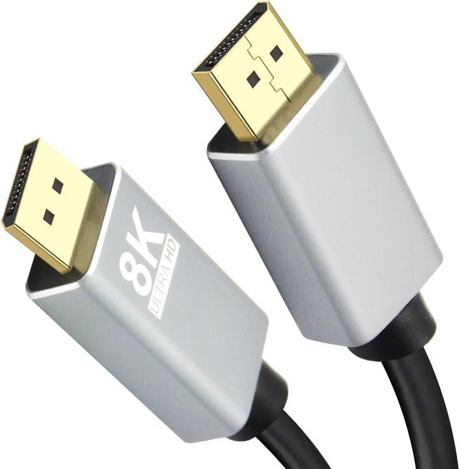 Helos Anschlusskabel, DisplayPort Stecker/Stecker, PREMIUM 8K, 5,0m, schwarz DisplayPort 1.4 Stecker/Stecker , PREMIUM , TPE Außenmantel - hochflexibel , Aluminium-Gehäuse , 7680 x 4320 @ 120 Hz , vergoldete Kontakte , ULTRA HD 8K , ROHS 2.0 und REACH-Konform , Farbe: schwarz (288446)