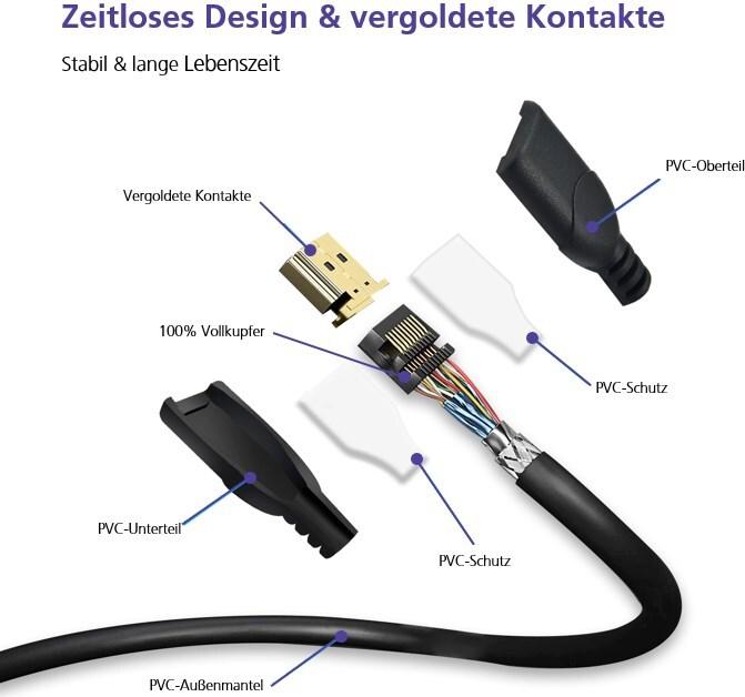 Helos Anschlusskabel, HDMI Stecker/Stecker, 4K, 3,0m, schwarz HDMI 2.0 Stecker/Stecker, 3840 x 2160 @ 60 HZ , vergoldete Kontakte , ULTRA HD 4K , ROHS 2.0 und REACH-konform , Farbe: schwarz (288393)
