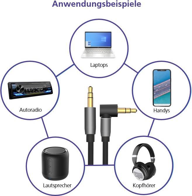 Helos Premium - Audiokabel - Mini-Stecker Stecker zu Mini-Stecker Stecker gewinkelt - 2 m - Schwarz