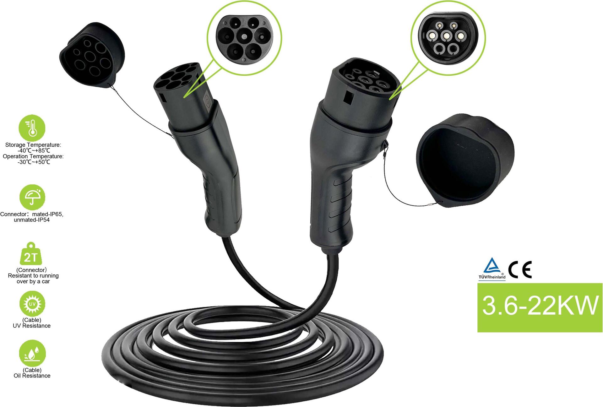 Helos E-Auto-Ladekabel, Typ 2, TÜV, 3-phasig, 32 A, 22 kW, 7,5m geeignet für alle gängigen Fahrzeuge , Lademodus nach Mode 3 (IEC 61851) , Ladeleistungen bis 22 kW, 3-phasig , 32 A Ladestrom bei einer Nennspannung von 415 V AC , IP66 & ...