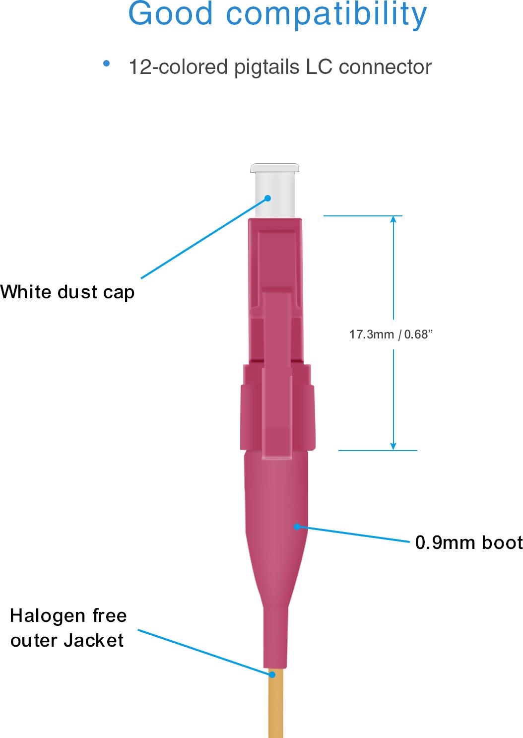 Leistungsmerkmale Halogenfrei, Keramikferrule, auf Hochglanz polierter Steckverbinder, ceramic boot, loose buffered