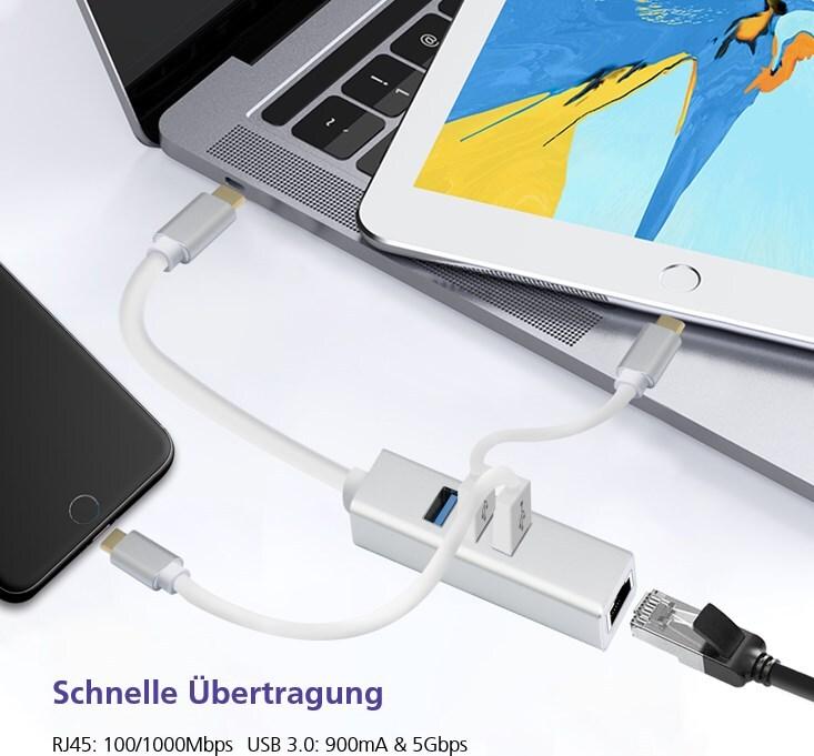 Helos HUB, USB 3.1 Type-C™St./3x USB + RJ45 Gigabit Ethernet, PREMIUM 4K, silber USB Type-C™ HUB mit USB 3.1 Type-C™St./3x USB 3.0 Bu. + RJ45 Gigabit Ethernet , PREMIUM , TPE Außenmantel - hochflexibel , Aluminium-Gehäuse , CE-zertifiziert , ...
