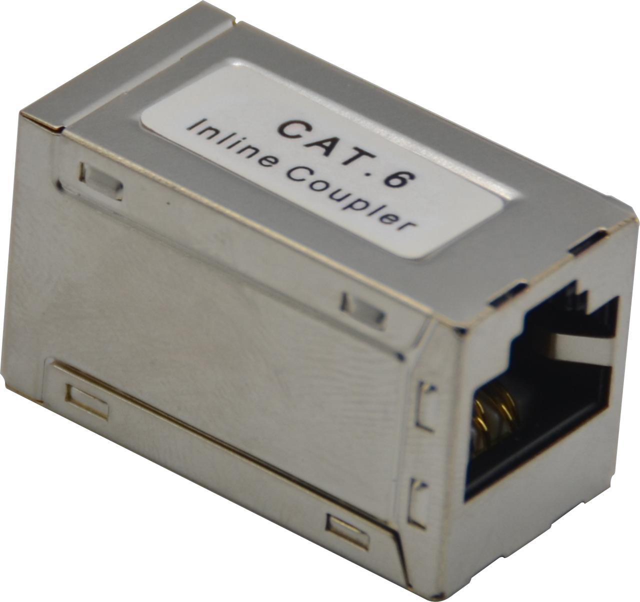 Helos Keystone CAT 6 Modularkupplung SLIM (RJ45 Verbinder geschirmt) RJ45 Bu./RJ45 Bu. , Belegung 1:1 , Adapter zum Verbinden von zwei Patchkabeln , Cat.6 , 250MHz Class E , Metallgehäuse , komplett geschirmt , vergoldete Kontakte , silber (307454)