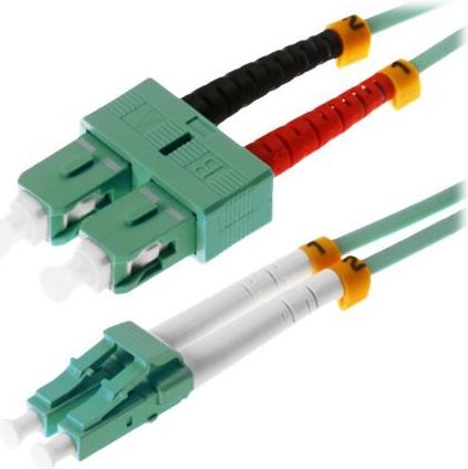Helos - Patch-Kabel - LC Multi-Mode (M) zu SC multi-mode (M) - 0.5 m - Glasfaser - Duplex - 50/125 Mikrometer - OM3 - geformt - Aquamarin, Fiberglas