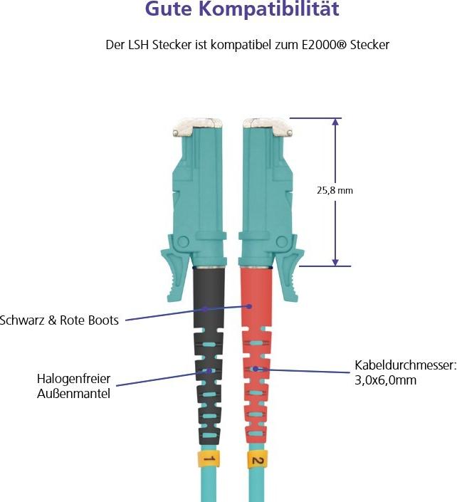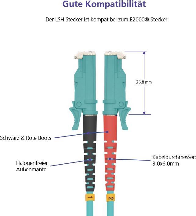Herweck Helos - Patch-Kabel - E2000 Multi-Mode zu LC Multi-Mode - 10,0m - Glasfaser - Duplex - 50/125 Mikrometer - OM3 - Aquamarin (254695)