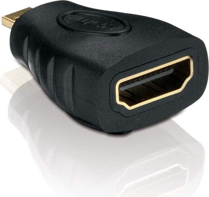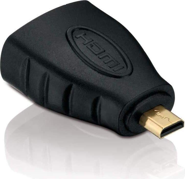Helos Micro HDMI/HDMI Adapter - Eco - 1080p Micro HDMI/HDMI 1080p Adapter mit vergoldeten Steckkontakten. Micro HDMI D Stecker (19pol) auf HDMI A Buchse (19pol). Farbe: Schwarz *RoHS Compliant* (X-HA050)