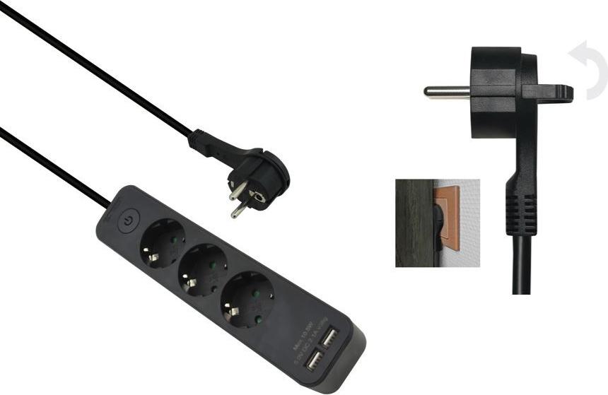 Helos Steckdosenleiste ADVANCED, 3-fach, USB-Charger schwarz, 1,5m, mit Schalter Robustes ansprechendes Design , 1,5m Zuleitung , Leiterquerschnitt: 1,5 mm² , Kabeltyp: H05VV-F 3G1.5mm , mit Druck-Schalter , 3 Schutzkontaktsteckdosen 45° gedreht , ...