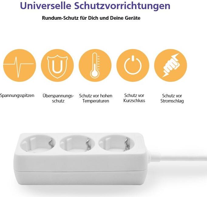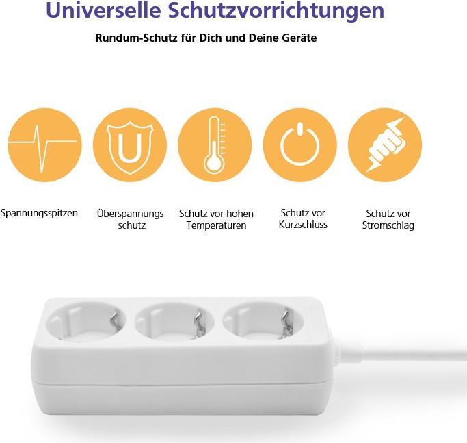 Helos Steckdosenleiste CLASSIC, 3-fach, weiß, 1,5m, ohne Schalter Robustes klassisches Design , 1,5m Zuleitung , Leiterquerschnitt: 1,5 mm² , Kabeltyp: H05VV-F 3G1.5mm , ohne Schalter , 3 Schutzkontaktsteckdosen 45° gedreht , mit Berührungsschutz , belastbar bis zu 16 A/230V (4000 Watt) , VDE, CE und GS-Zertifiziert , Farbe: weiß (262787)