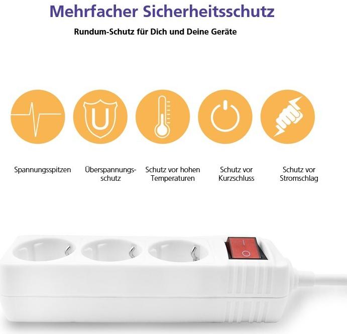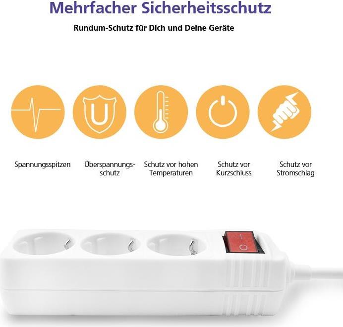 Helos Steckdosenleiste CLASSIC, 3-fach, weiß, 3,0m, mit Schalter Robustes klassisches Design , 3,0m Zuleitung , Leiterquerschnitt: 1,5 mm² , Kabeltyp: H05VV-F 3G1.5mm , mit Schalter , 3 Schutzkontaktsteckdosen 45° gedreht , mit Berührungsschutz ...