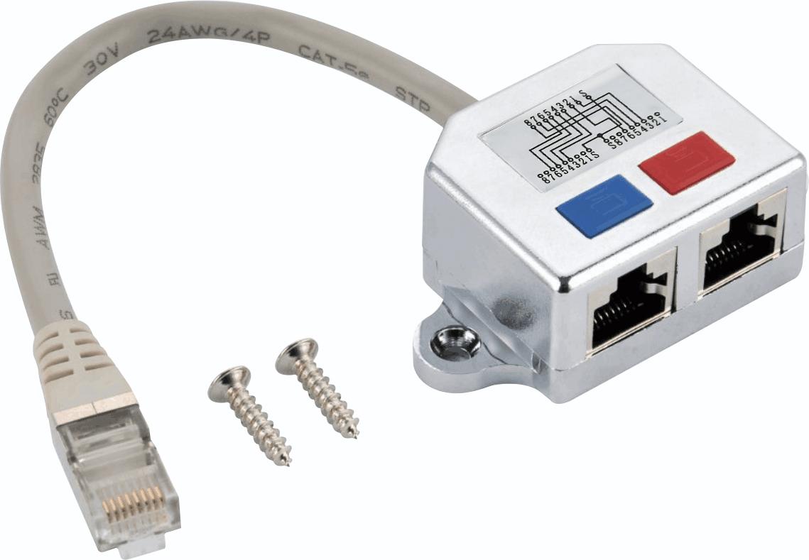Helos T-Adapter Cat 5e ISDN/ISDN Cable-Sharing Adapter 0,15m - 1x RJ45 Stecker an 2x RJ45 Buchse - Kunststoffgehäuse metallisiert - Kabellänge: 0,15m - vergoldete Kontakte - ISDN/ISDN (263835)