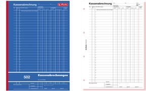 herlitz Formularbuch "Kassenabrechnung 1275,10cm (502"), DIN A4 2 x 50 Blatt, 1. Blatt weiß, 2. Blatt rosa, Papier holzfrei, mit Durchschreibepapier (Kohlepapier), perforiert, 1. Blatt gelocht (00882415-001)
