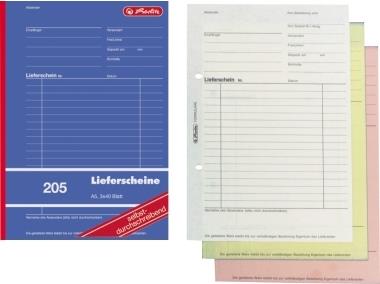 herlitz Formularbuch \"Liefer-/Empfangsschein 205\", DIN A5 -------------------- für den Markt: D ---------------------- 3 x 40 Blatt, 1. Blatt weiß, 2. Blatt gelb, 3. Blatt rosa, Papier holzfrei, selbstdurchschreibend, mit Schreibschutz- klappe, perforiert, gelocht (00883546-001)