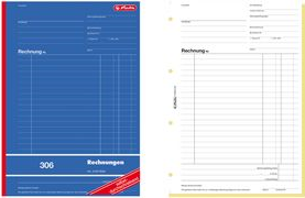 herlitz Formularbuch \"Rechnung 307\", DIN A5, 3 x 40 Blatt -------------------- für den Markt: D ---------------------- 1. Blatt weiß, 2. Blatt gelb, 3. Blatt rosa, Papier holzfrei selbstdurchschreibend, mit Schreibschutzklappe, perforiert, gelocht (00888545-002)