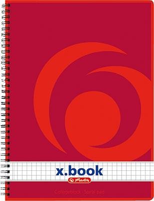 • herlitz Collegeblock x-book DIN A5, 80 Blatt, kariert Rand links, 70 g-qm, holzfrei, gelocht, Rundspirale, mit (297531)