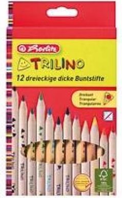 herlitz Dreikant-Buntstifte Trilino, 12er Karton-Etui aus Zedernholz, naturbelassen, Jumbo-Dreikantform, Minen- (10412062)
